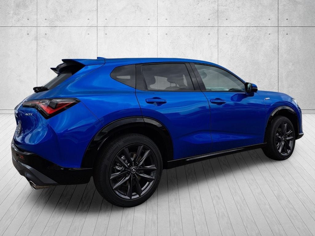 The exterior of the ADX is a stunning display of Acura's attention to detail, with a bold, blue finish that commands attention on the road. The A-Spec Package adds a touch of sportiness with its unique styling cues, including a rear spoiler and 19-inch alloy wheels that give the vehicle a commanding presence.